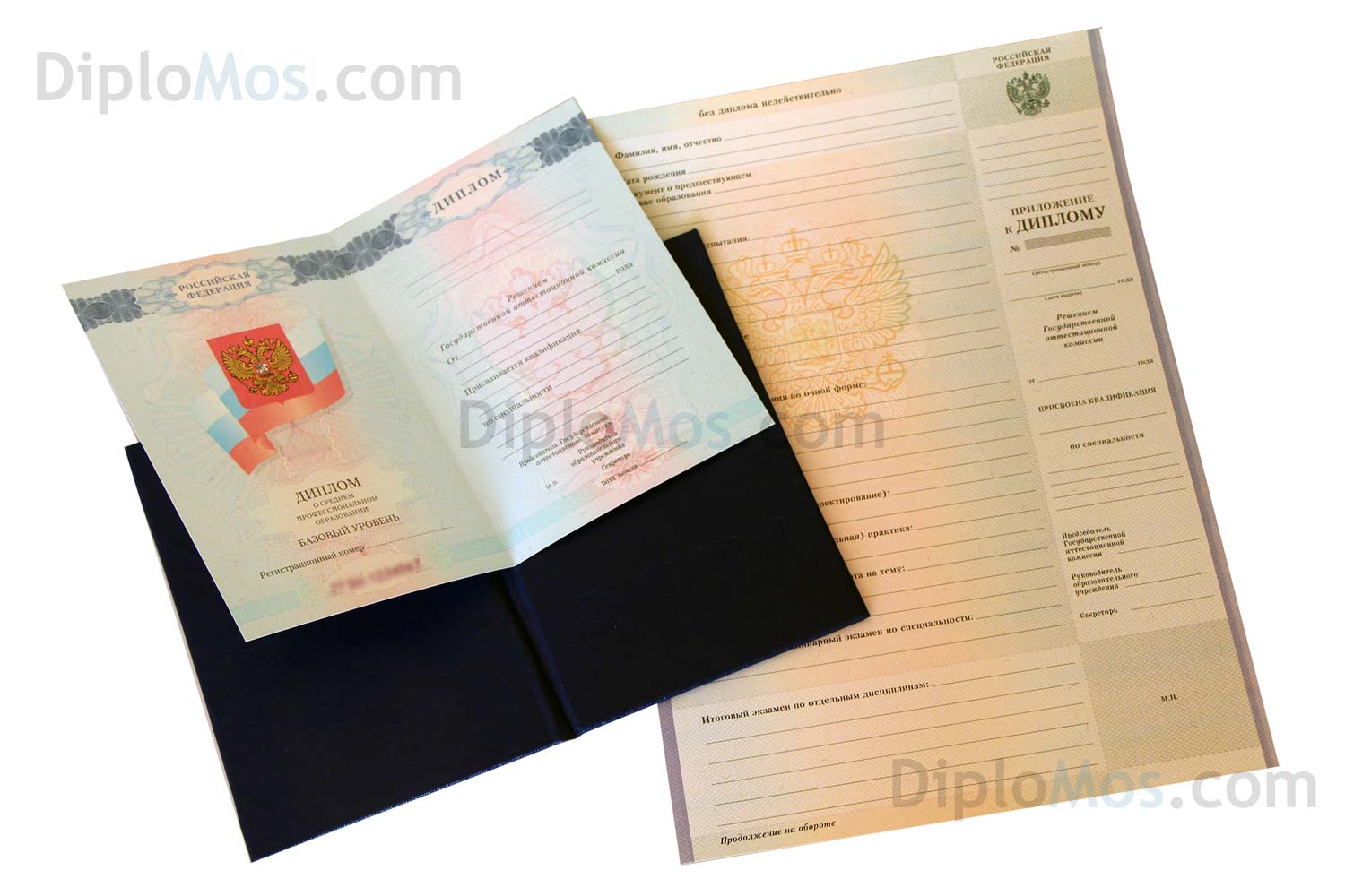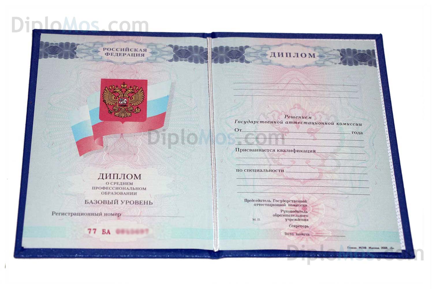 Диплом: Полный комплект с обложкой и приложением, заполненный, как в ССУЗе